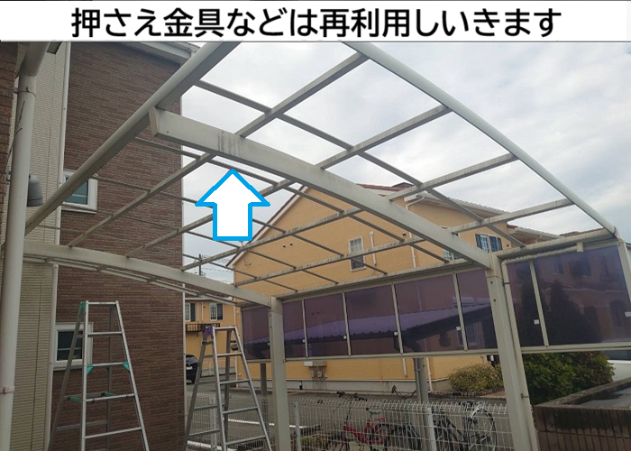 点検の結果、ポリカーボネート板の傷みと固定部分のゆるみが確認できたため、屋根の貼り替えをご提案しました😊🏠