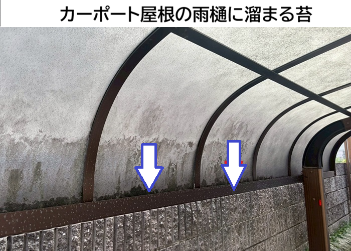 今回は尼崎市で、カーポート屋根の樋に苔がたまっているお家を無料でチェックしてきました🏠🌿