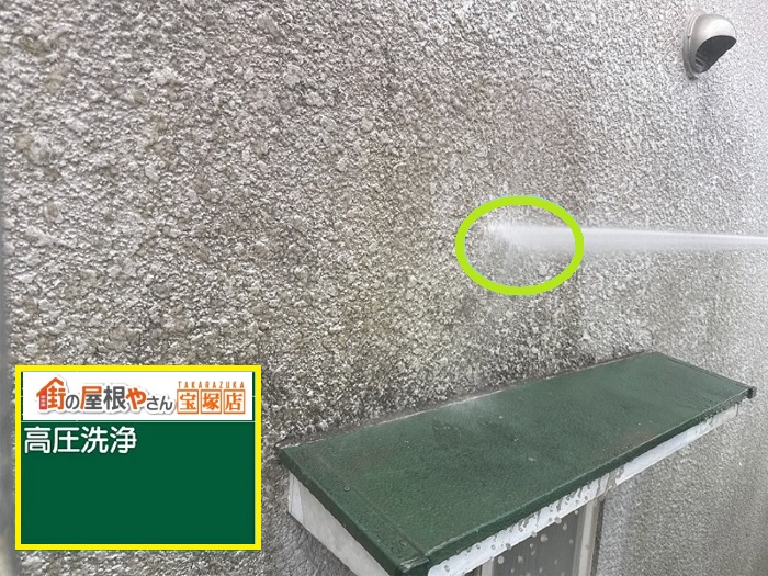 高圧の水流で、長年こびりついたコケや汚れ、砂ぼこりを一気に洗い流すと建物全体がパッと明るくなりますよ~🎵
