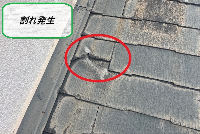 カラーベストが割れる主な原因は『紫外線や雨風による長年の劣化に加え台風や地震さらには飛来物の衝撃』です💀
