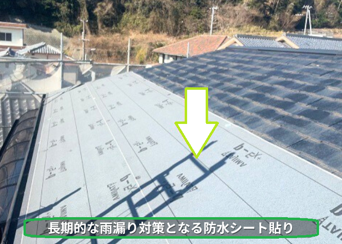 この工法は既存のカラーベストを撤去せずその上から新しい防水シートと屋根材を重ねて施工する方法🌈