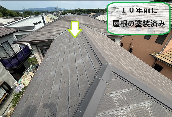 それでは、10年前に塗装されたスレート屋根の棟板金を点検していきます(^^)🔍