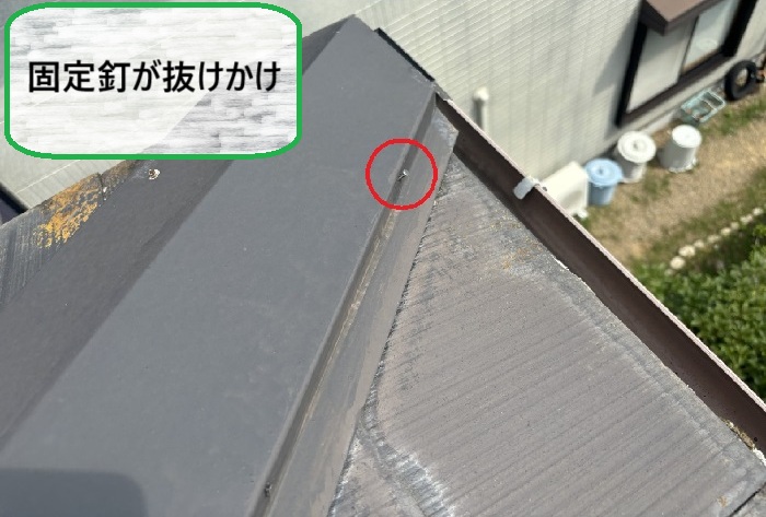 特に塗装から10年ほど経過したスレート屋根では、棟板金の浮きや釘の緩みが起きやすくなります。