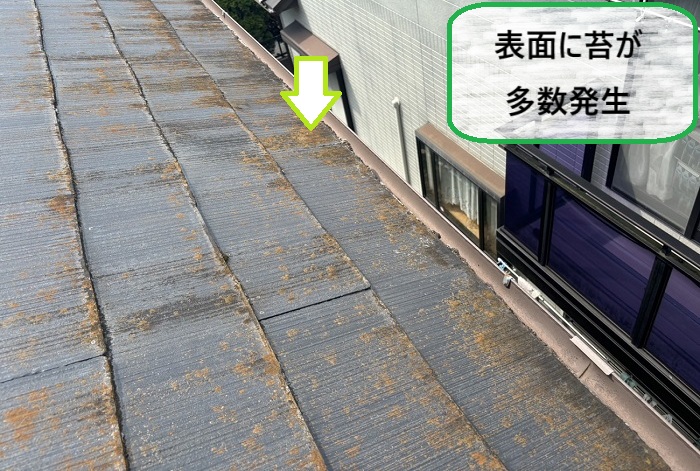 コチラが10年前に塗装されたスレート屋根(カラーベスト)です(´꒳`)✨