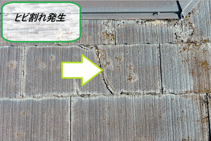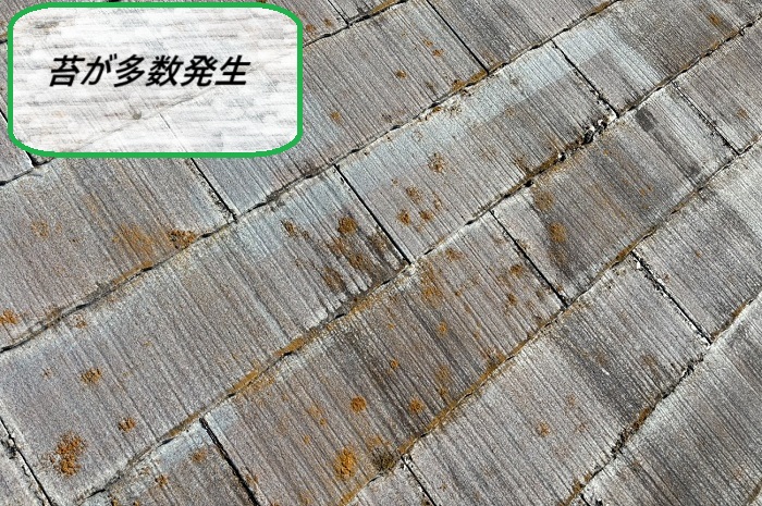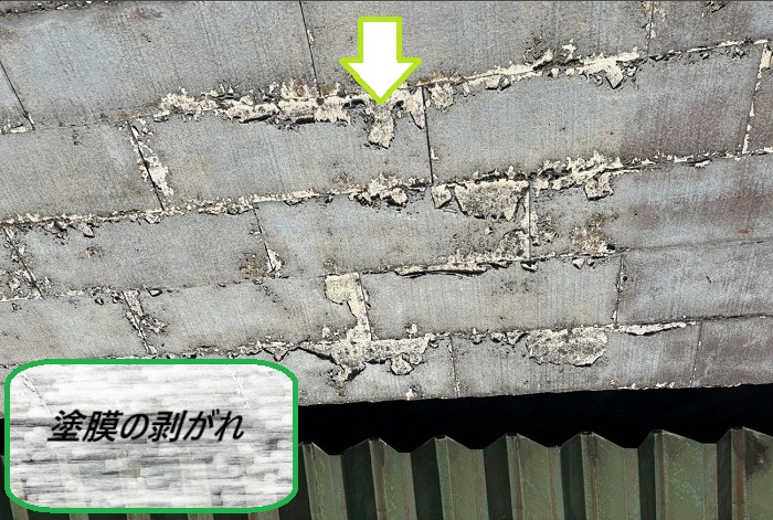 漏り点検で確認した平型スレート屋根は、劣化が進んでいて塗装による補修は不可能な状態でした💀