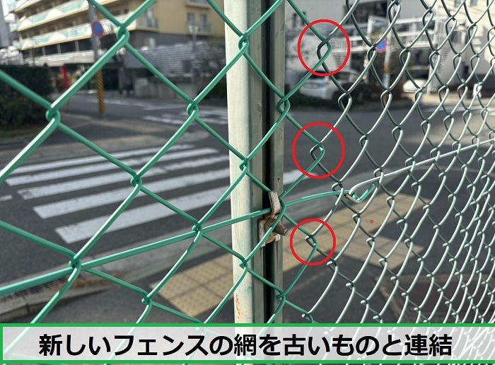 網状フェンスは端から端まで、一枚物で取り付けられている状態でした🔧