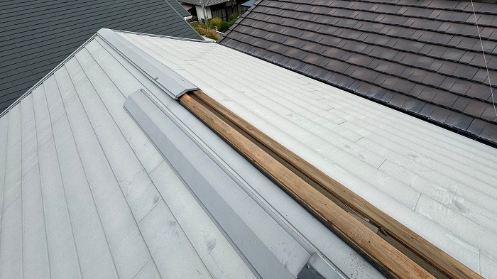 修理内容としては、まず傷んだ棟板金を取り外して処分し、内部の下地木材も新しいものへ交換します。