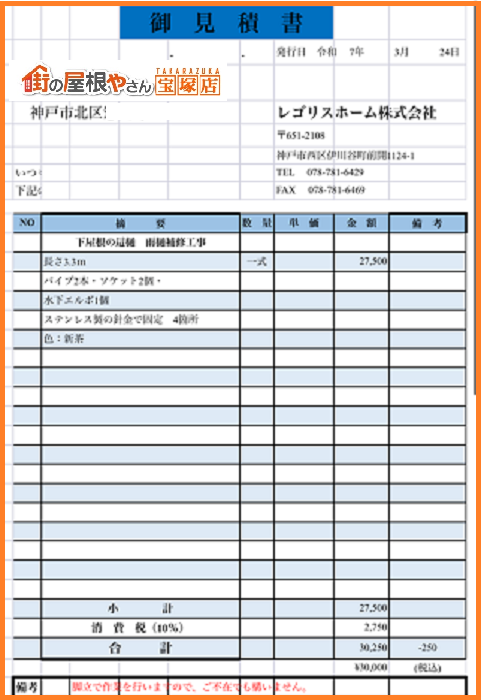 みなさん、こんにちは🌟街の屋根やさん宝塚店の京谷ですっ! 今回はいつもの現場紹介だけじゃなくて、実際に工事したおうちの見積書まで大公開しちゃおうと思います(๑•̀ㅂ•́)و✧ 外装リフォームって、「高そう!」「見積書の内容が難しい…」「お店によっ…