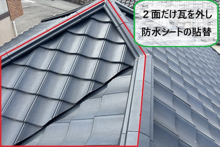 谷のある屋根では、防水シートを『谷と平行』に貼ってから、『軒先と平行』に下から順に重ねるのが正しい施工方法!