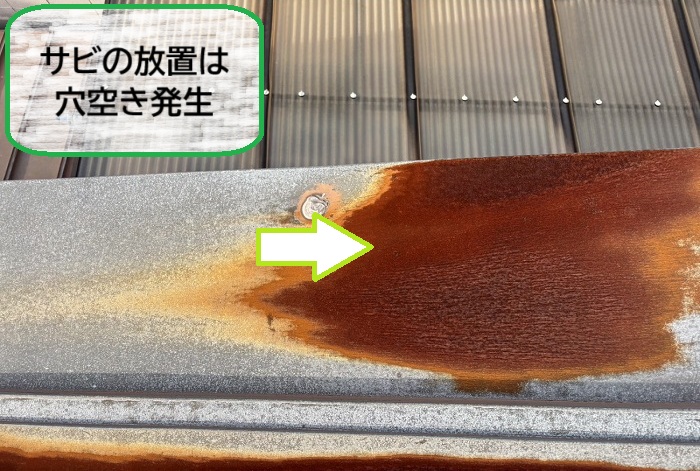 金属屋根は軽量で耐久性が高い反面、錆が進行すると雨漏りや屋根材の劣化につながることがあります👆