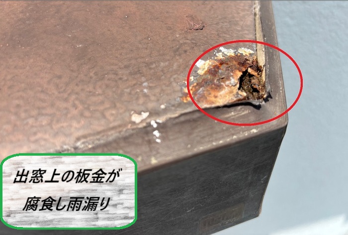 今回の雨漏り原因は、『出窓角部の腐食と板金の劣化』によるものと判断しました🕵