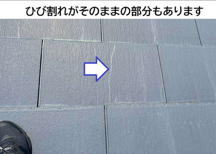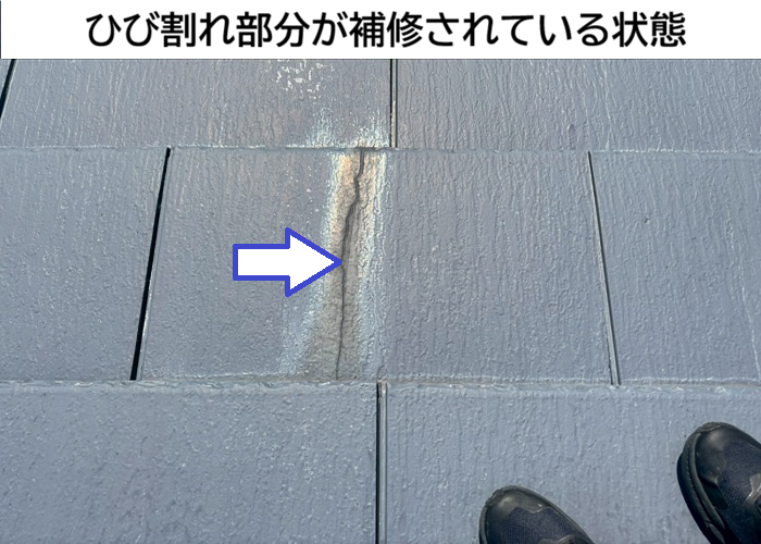 屋根を確認すると、以前にひび割れ部分へシーリング補修がされている跡がありました🔍🏠