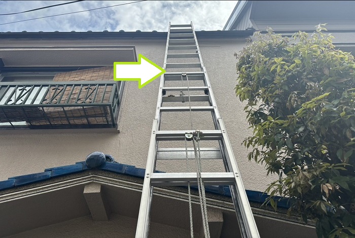 基本的に屋根の無料点検を行う際はハシゴを掛けて屋根に昇っていきます!