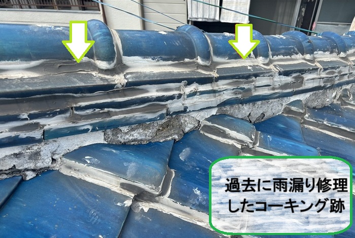 過去の雨漏り修理では、屋根の隙間という隙間がコーキングでベッタリ塞がれていました(;◇;)