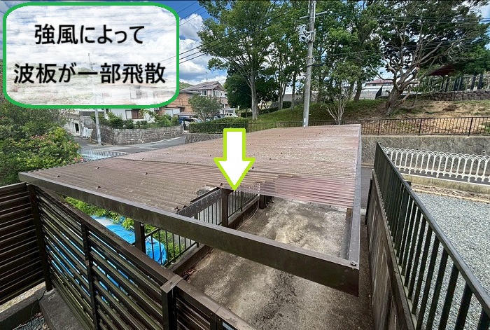強風による波板の飛散は、火災保険の補償対象となる場合があります🏠