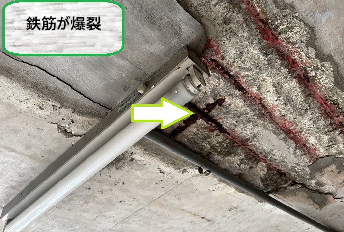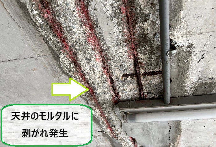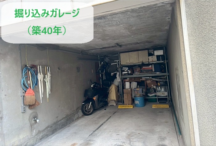 小野市 掘り込みガレージの天井トラブル|鉄筋の錆び・爆裂でモルタルが剥離