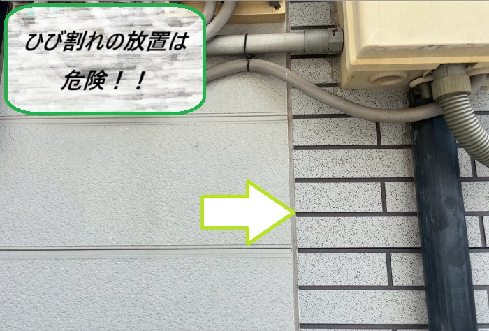 窯業サイディングのひび割れを放置すると、雨水が入り込み外壁の内側や建物内部に悪影響を及ぼす恐れがあります(>_<)
