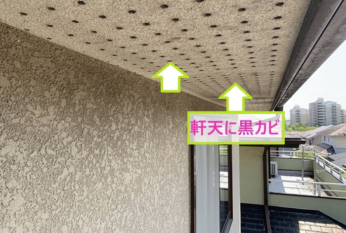 軒天は湿気がこもりやすく、カビが出やすい場所。