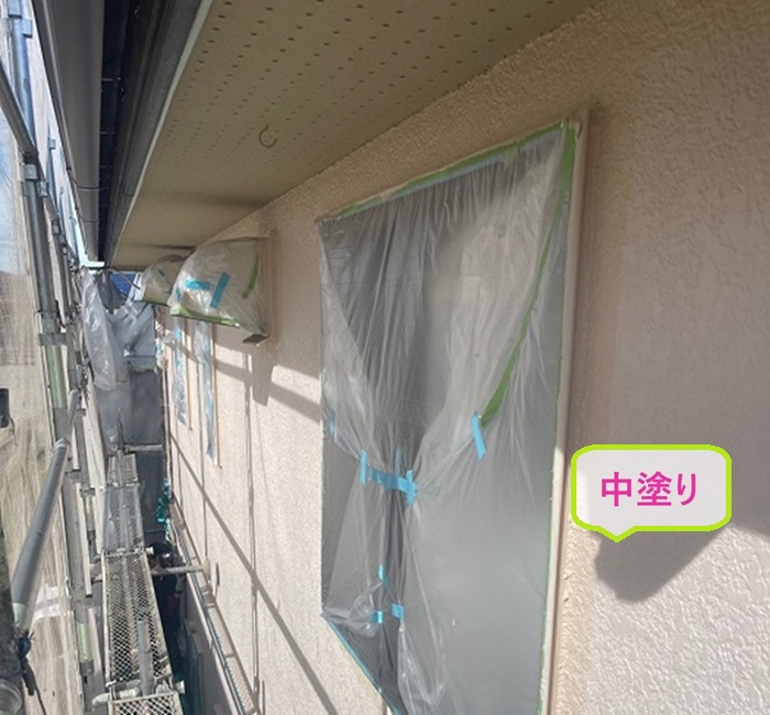 補修ができたら、次は窓や玄関ドアなどに塗料が付かないよう ビニールで丁寧に養生。