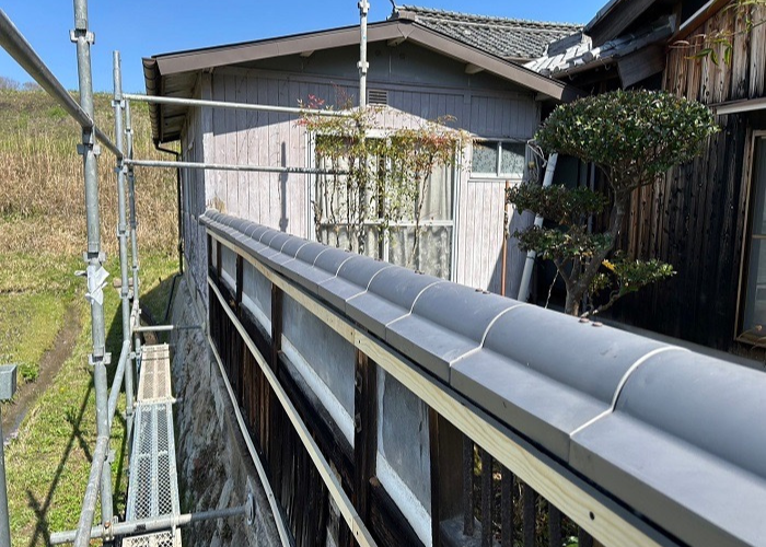 このままではさらに崩れる可能性もあるため、既存の瓦と傷んだ下地を撤去し、新しく笠木瓦を設置するご提案をしました🏗️